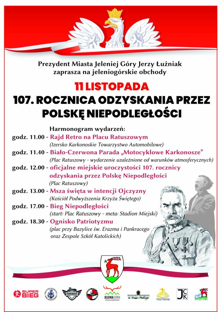 Władze Jeleniej Góry zapraszają na miejskie obchody 107. rocznicy odzyskania przez Polskę niepodległości. 11 listopada 2025 główne uroczystości odbywać się będą na jeleniogórskim rynku w programie są też jednak inne wydarzenia. – Zachęcamy do wspólnego świętowania, udziału w wydarzeniach i uczczenia tego wyjątkowego dnia w biało-czerwonych barwach! – apelują samorządowcy. Na mieszkańców miasta czekają bezpłatne flagi narodowe, które rozdaje samorząd. W święto bezpłatny wstęp jest do Muzeum Historii i Militariów- oddziału Muzeum Karkonoskiego w Jeleniej Górze, gdzie czeka szereg atrakcji przygotowanych przez muzealników we współpracy z Towarzystwem Historycznym Zamku Czocha!