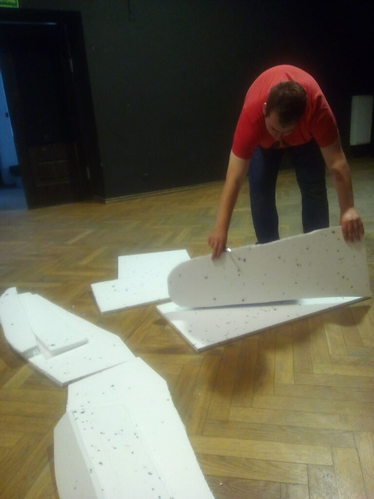 Miejsce do kreatywnych prac udostępniło studentom KANS-u Jeleniogórskie Centrum Kultury. Grupa od 16 maja trudzi się nad wyliczaniem, wycinaniem, klejeniem i malowaniem kolejnych części. Prace planowo zakończyć się mają dopiero na dzień przed studenckim pochodem. Na cześć KANS-u pojazd będzie nosił uczelniane barwy – magenta i złoto.