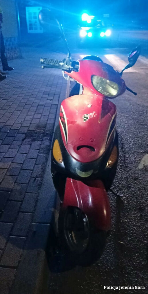 Do drugiego zdarzenia doszło tego samego dnia, około godziny 16.30 w Podgórzynie na ulicy Żołnierskiej. 51-letni kierujący skuterem, omijając pojazd, który zatrzymał się przed przejściem dla pieszych, potrącił przechodzące przez nie dwie kobiety w wieku 51 i 58 lat. Jak się później okazało, mężczyzna był nietrzeźwy – badanie wykazało w jego organizmie blisko 1,5 promila alkoholu. Został on natychmiast zatrzymany i osadzony w policyjnym areszcie do wytrzeźwienia i dalszych czynności.