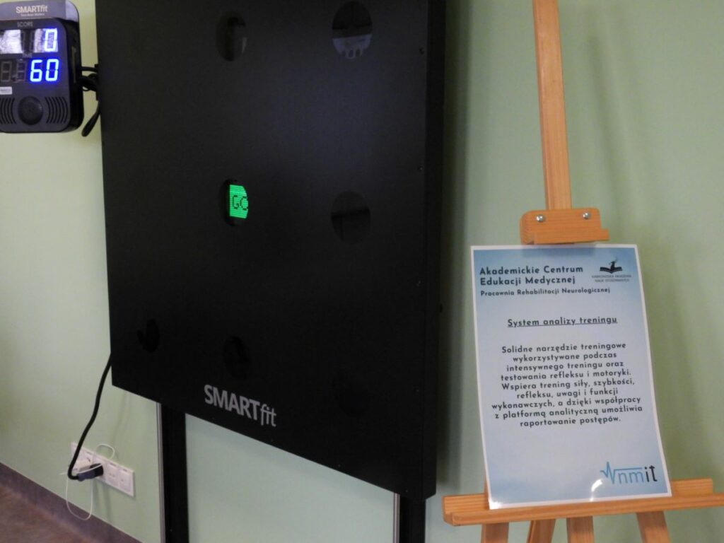 Wśród urządzeń w pracowniach są m.in.: aparaty do elektroterapii, platformy i systemy do analizy chodu, równowagi i pracy mięśni z możliwością obserwacji ruchu, sprzęt do pracy nad wydolnością, równowagą i siłą, systemy do analizy funkcji motorycznych, stoły rehabilitacyjne czy wysokiej klasy aparat USG. Niektóre narzędzia mogą zaskakiwać swoją formą, np. zainstalowane w pracowni rehabilitacji neurologicznej urządzenie terapeutyczne do kinezjoterapii, stworzone do przywracania funkcjonalności kończyn górnych, wzmocnienia neuroplastyczności i optymalizacji rezultatów motorycznych oraz poznawczych, które w trakcie jednej sesji motywuje pacjenta do wykonania ponad 1000 ruchów. Umożliwia chociażby granie w gry, z których duża część działa na zasadach zbliżonych do klasyków gatunku. Są także system analizy treningu funkcji poznawczych i motorycznych w postaci dużej tablicy z dziewięcioma polami, w które stuka się w określony sposób rękami bądź pałeczkami – na przykład spośród dziewięciu liczb wybiera się jedną, od której odejmuje się siedem, a w następnej kolejności należy wskazać wynik tego odejmowania. Mierzy się czas reakcji, rejestrowane są błędy, zlicza się nawet punkty. Wydaje się to proste, ale dla wielu pacjentów neurologicznych uderzanie jedną, konkretną ręką w określone daną zasadą miejsce często wcale takie nie jest. Obecne w pracowni urządzenia pomagają wracać chorym osobom do sprawności. Studenci korzystając z takiego sprzętu mogą nie tylko nauczyć się, co i jak działa, ale też lepiej zrozumieć potrzeby pacjentów.