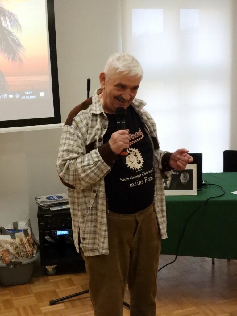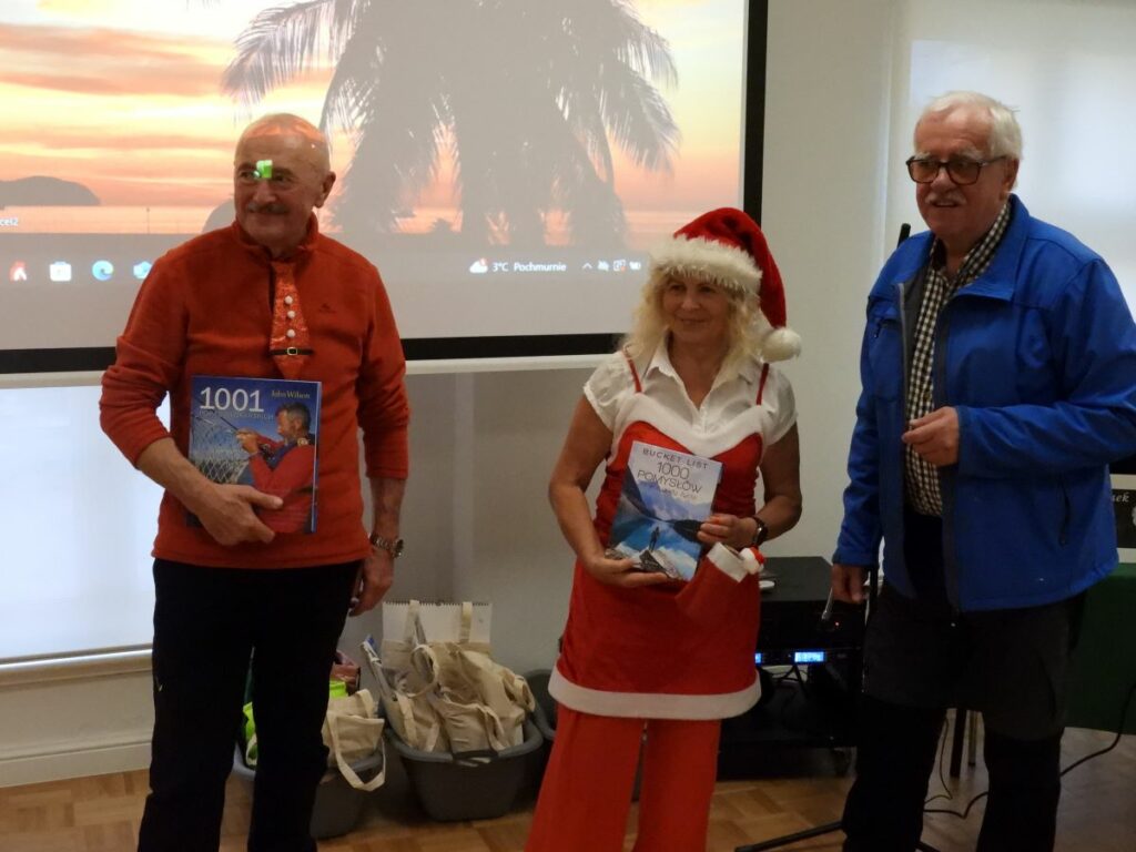 W trakcie uroczystości odczuć można było każdą możliwą emocję – była radość, była nostalgia, były wzruszenia. Przygotowano wystawny poczęstunek, wyświetlono godzinny miks zdjęć ze wszystkich tegorocznych wycieczek przygotowany przez Pana Bolka, uczestnika, zorganizowano konkurs wiedzy o regionie, wręczono nagrody za najwyższą frekwencję i zaangażowanie oraz zaprezentowano listę uczestników z całego roku. Była naprawdę bardzo długa – osób spisano na niej aż 1450, a po pełnym rozwinięciu do jej wygodnego trzymania potrzebne były dwie osoby! Minutą ciszy uczczono także pamięć jednego z uczestników, Pana Romka. Także i jemu poświęcono krótki pokaz zdjęć.