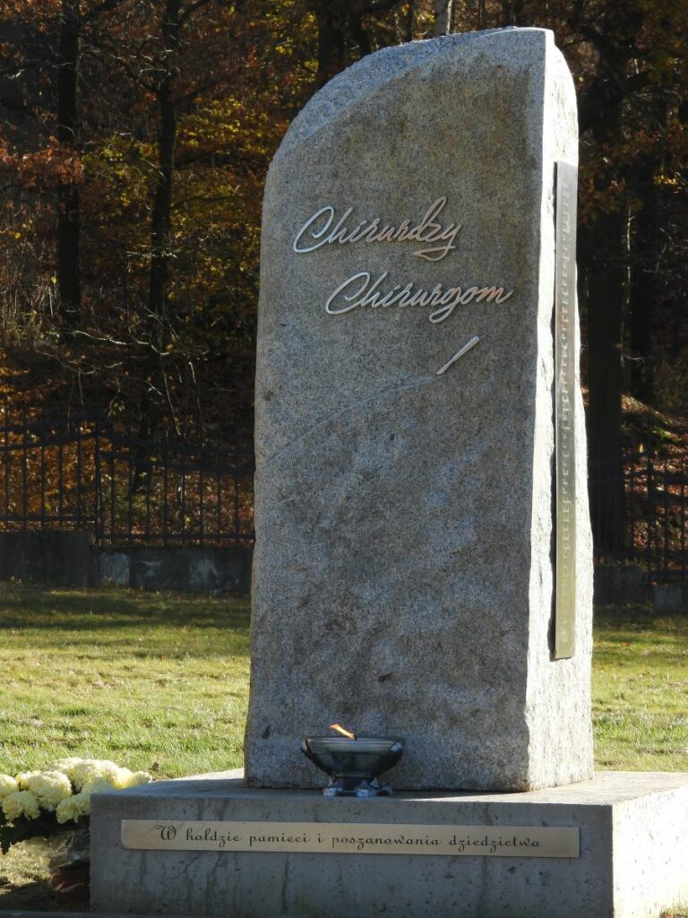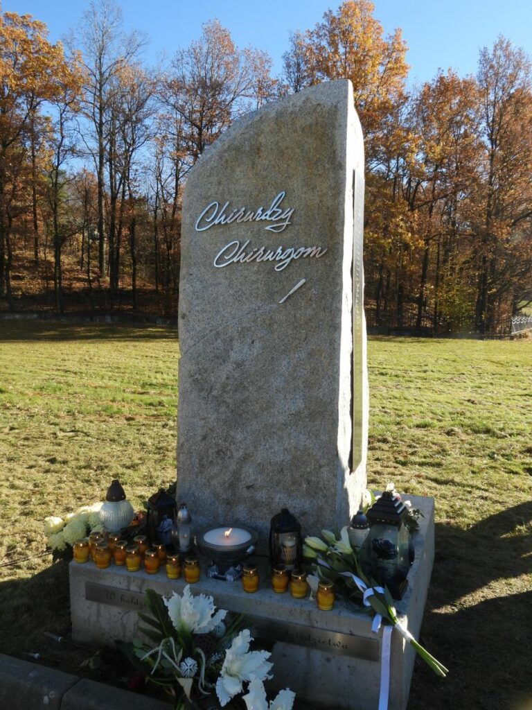 Pomnik, który odsłonięto 7 listopada 2025 na cmentarzu komunalnym przy ulicy Krośnieńskiej w Cieplicach jest skromny, ale wymowny – kamienny obelisk dzieli na dwie części cienka linia, z końcówki której wystaje złoty skalpel. „Chirurdzy chirurgom” – głosi zamieszczony nad kreską napis. Rzeźba, wykonana przez Macieja Wokana, jest inicjatywą doktora Oskara Pelzera – jeleniogórskiego chirurga z oddziału chirurgii ogólnej i onkologicznej.