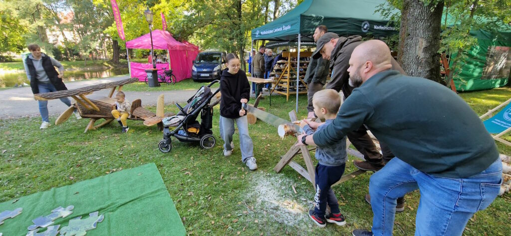 W sobotę, 27 września 2025 w lwóweckim parku darów lasu było co niemiara. Leśnicy opowiadali o żywiołach natury, które były tematem przewodnim ich prezentacji. Pokazywali też sprzęt używany do prac leśnych, urządzili ciekawą ekspozycję poświęconą historii miejscowego nadleśnictwa oraz wystawę grzybów, w różnoraki sposób opowiadali o przyrodzie, odpowiedzialnym korzystaniu z zasobów leśnych, rozdawali sadzonki drzew, zapraszali do udziału w zabawach, których bohaterami były skarby lasu oraz licznych warsztatach twórczych i ekologicznych.
