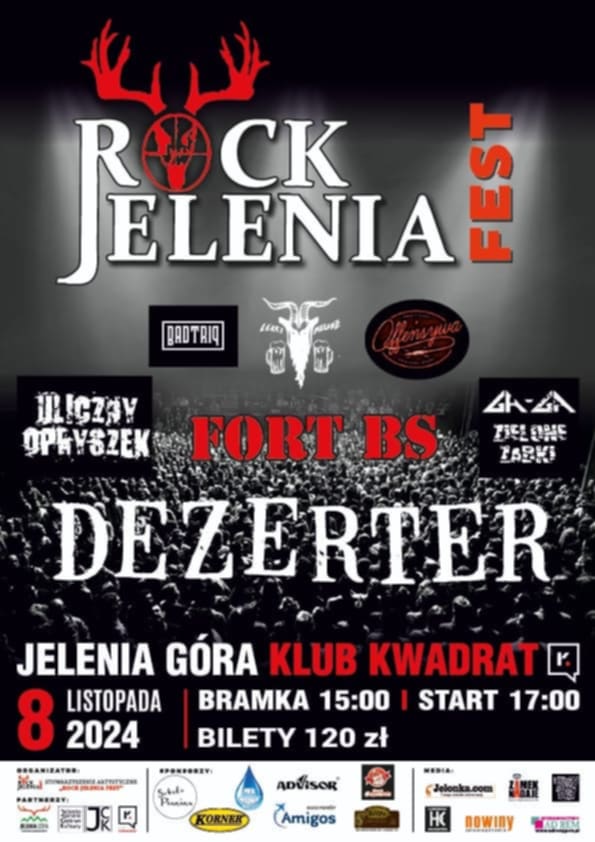 Już 8 listopada 2024 (piątek), o godz. 17.00 w Jeleniogórskim Centrum Kultury, w Klubie Kwadrat odbędzie się po raz trzeci jednodniowy festiwal ROCK JELENIA FEST, a na nim w koncercie finałowym zagra legendarny i nieugięty w swoim przekazie DEZERTER: „Mamy wolność słowa i wolność bycia sobą, mamy prawo wyboru i prawo do bycia idiotą”! Kto nigdy nie był z ducha dezerterem, będzie miał szansę doświadczyć tego powera! Wystarczy zdezerterować z domu lub z pracy!
