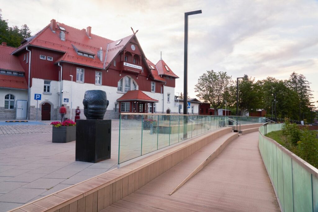 Zabytkowy obiekt położony jest u stóp Karkonoszy i Gór Izerskich oraz stanowi przykład połączenia historii z nowoczesnością oraz naciskiem na dbałość o środowisko. Dworzec, wzniesiony w 1902 roku i zmodernizowany w 2021 roku, zachował swój zabytkowy charakter, zyskując jednocześnie udogodnienia zwiększające komfort i dostępność dla wszystkich podróżnych.