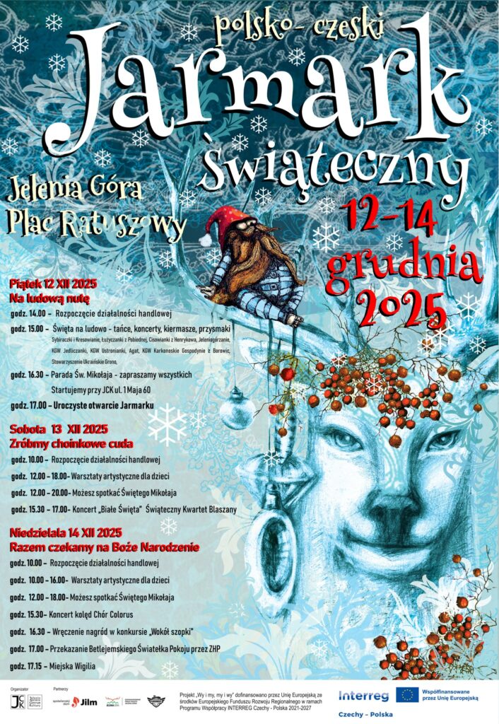 Trzy dni, od piątku do niedzieli (12 -14 grudnia 2025) , trwać będzie tegoroczny Jarmark Świąteczny na jeleniogórskim rynku. W programie, oprócz licznych stoisk handlowych, wiele innych propozycji – koncerty, warsztaty, pokazy. Piątek zaplanowany na ludową nutę rozpocznie Parada Świętego Mikołaja, w której każdy może wziąć udział. Sobota zarezerwowana jest przede wszystkim na własnoręczne tworzenie świątecznych cudeniek, a zwieńczeniem niedzielnego, wspólnego czekania na Boże Narodzenie uroczyste przekazanie Betlejemskiego Światełka Pokoju i Miejska Wigilia z dzieleniem się opłatkiem, życzeniami i kolędowaniem.