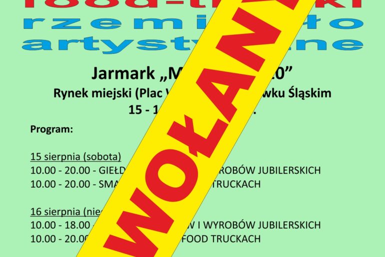 Na najbliższy weekend 15-16 sierpnia we Lwówku Ślaskim zapowiadany był plenerowy Jarmark Mi-Fo-Ra 2020 z giełdą minerałów, rzemiosła i rekodzieła oraz zjazdem food trucków. Impreza jedank nie odbędzie się.