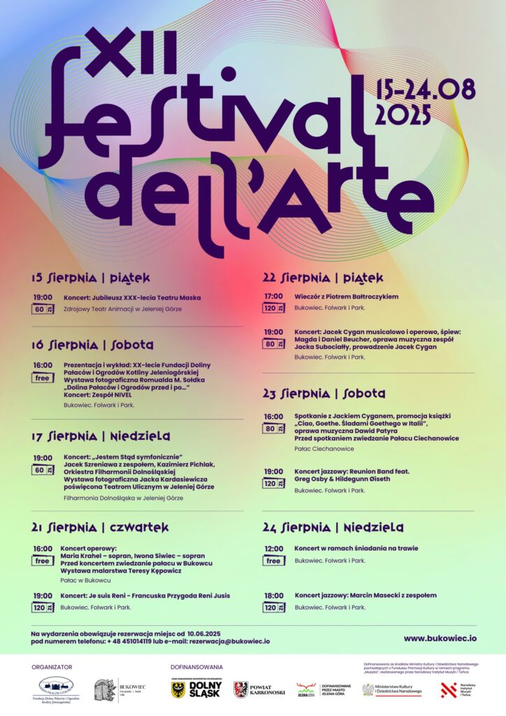 Informacje o biletach na stronie internetowej Festiwalu dell’Arte. Rezerwacja telefoniczna: +48 451 014 119 lub mailowo: rezerwacja@bukowiec.io