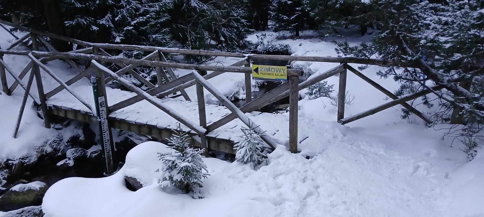 schroniska Samotnia – zimowy wariant szlaku prowadzi drogą transportową;