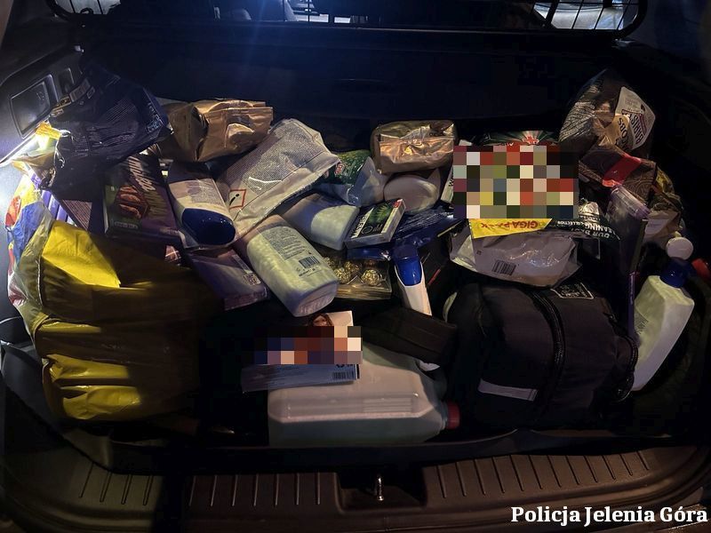 Podczas kontroli mundurowi sprawdzili również wnętrze pojazdu. W bagażniku znaleźli artykuły spożywcze i chemiczne, które pochodziły z kradzieży na terenie powiatu kamiennogórskiego. Ponadto po sprawdzeniu danych zatrzymanych w policyjnych systemach okazało się, że 31-letni mieszkaniec powiatu karkonoskiego jest osobą poszukiwaną przez policję do innych czynności prawnych.