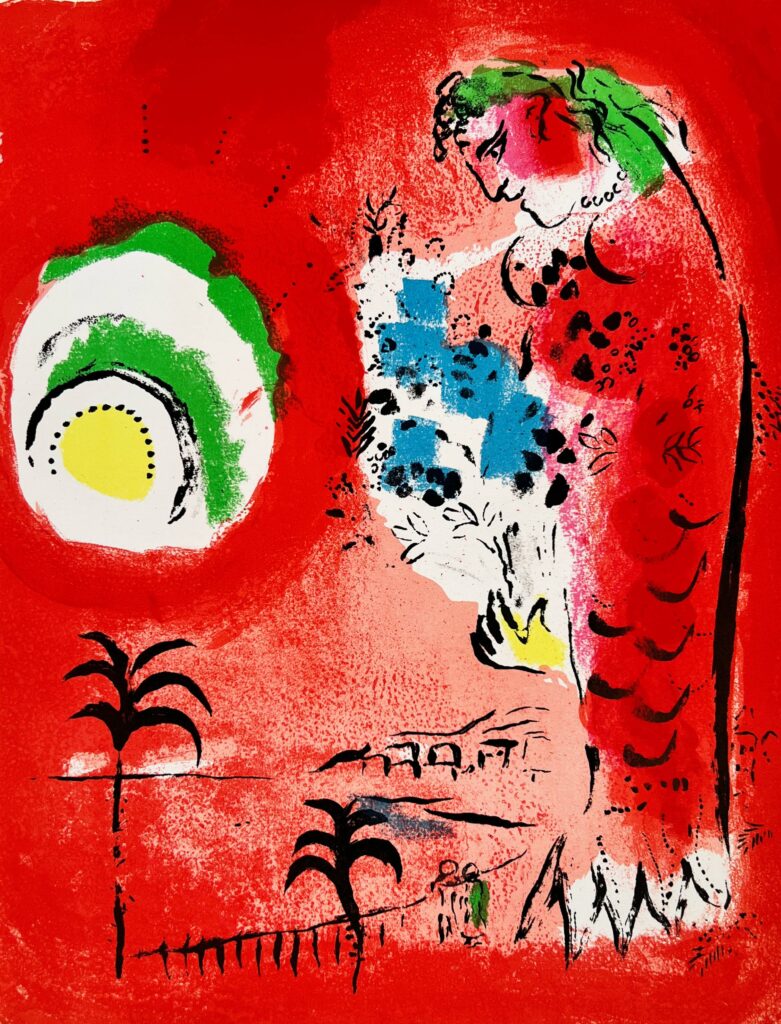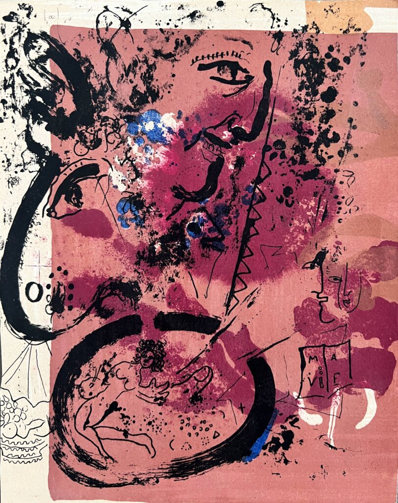 Marc Chagall uznawany jest za jednego z najwybitniejszych mistrzów litografii. Jego prace łączą elementy fowizmu, surrealizmu i ekspresjonizmu, ale jednocześnie są silnie zakorzenione w osobistych doświadczeniach, żydowskiej tradycji i motywach inspirowanych dzieciństwem. Jego dzieła przedstawiają latające postaci, anioły, muzyków, tańczące zwierzęta, a także symbole żydowskie jak menora czy Tora. Malował kolorowe obrazy pełne symboli, które często miały związek z jego przeszłością i religią.