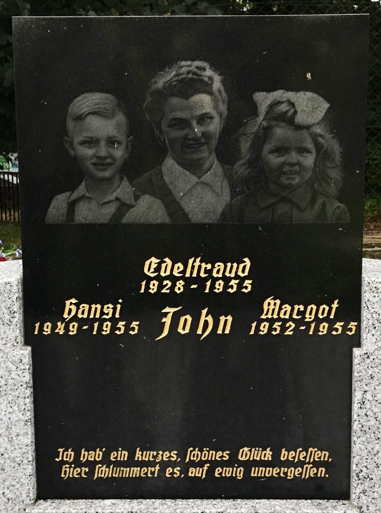 Pogrzeb całej trójki odbył się w Zacleřu. Cała uroczystość wyglądała jak dzisiejsze marsze przeciw przemocy. Zgromadziły się setki ludzi. Trzy białe trumny były niesione przez górników w odświętnych strojach. W trutnovskim archiwum przechowywane są kroniki poszczególnych miast i wsi pogranicza. Nawet najmniejsza wieś miała swoją kronikę. Jaka szkoda, że do wszystkich tomów kronik zapisanych po 1945 roku chwilowo zablokowano dostęp; są w opracowywaniu za względu na RODO (wrażliwe dane osobowe). Najpewniej w zacleřskiej kronice znaleźlibyśmy szczegółowy opis tego wydarzenia. Nagrobek rodziny Johnów wyróżnia się na zacleřskim cmentarzu. Od kiedy można „wydrukować” w kamieniu fotografię? Relatywnie od niedawna.