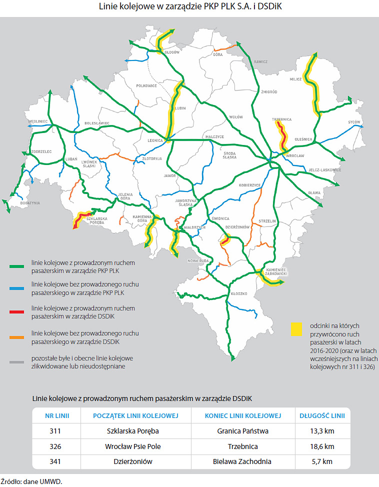 Rzecznik zwraca uwagę, że aktywność samorządu województwa dla rozwoju kolei to również uruchamianie połączeń na liniach należących do państwowego zarządcy – PKP PLK. Przywróciliśmy w ten sposób w 2019 roku połączenie do Lubina, który przez blisko dwie dekady był pozbawiony dostępu do kolei pasażerskiej. Uruchomiliśmy w grudniu 2021 roku połączenie z Wrocławia do Jelcza-Laskowic przez Gminę Czernica, tworząc we współpracy z lokalnymi samorządami Dolnośląskie Koleje Aglomeracyjne, które będziemy rozwijać w obszarach aglomeracyjnych regionu. Na planowanej do otwarcia w 2022 roku przez PKP PLK linii z Wrocławia przez Sobótkę do Świdnicy również kursować będą pociągi Kolei Dolnośląskich, a linia jest modernizowana dzięki środkom unijnym, które przeznaczył na ten cel właśnie Samorząd Województwa Dolnośląskiego.
