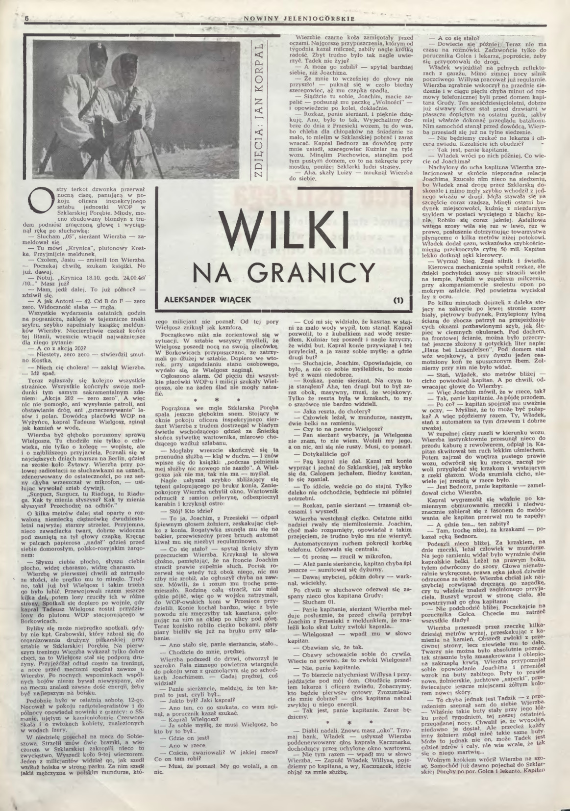 Tekst “Wilki na granicy (1)” autorstwa Aleksandra Wiącka, ukazał się pierwotnie w “Nowinach Jeleniogórskich” 22 grudnia 1960 roku, w numerze 51-52., na stronach 6-7.