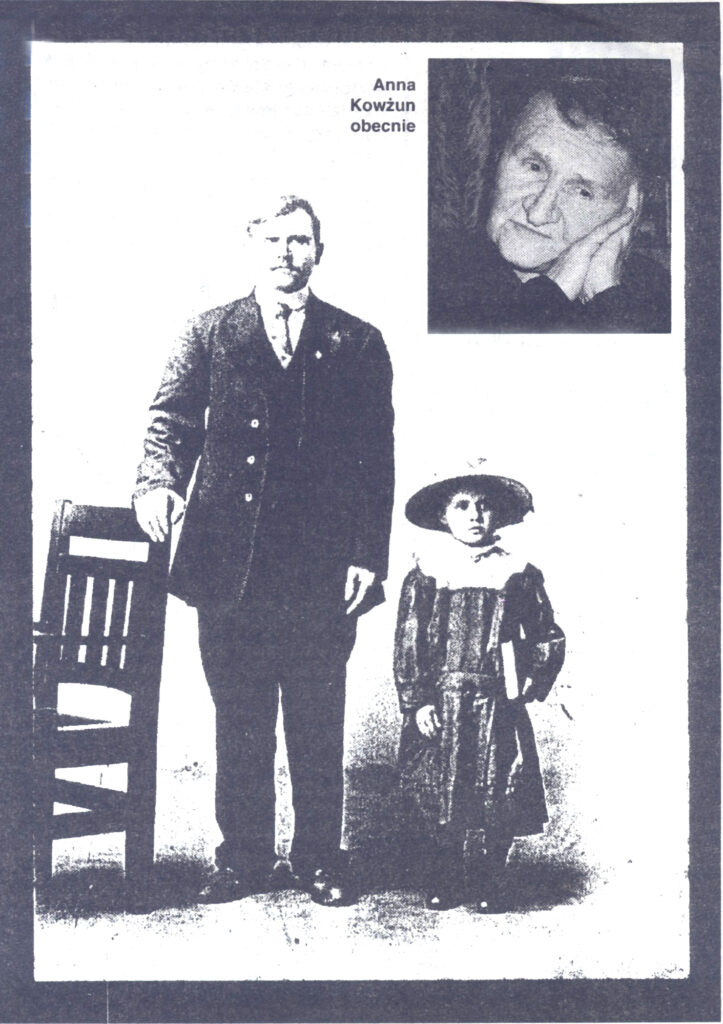 Jan Kowzun, naczelnik stacji w Pilskich Błotach – na dzisiejszej Białorusi – dochodził do trzydziestki i nie raz myślał o ożenku. Miejscowe panny generalnie nie spełniały jego oczekiwań – jedne znał zbyt dobrze, aby dopuszczać myśl o związku z którąś z nich, inne dyskwalifikowały niskie pochodzenie i niewystarczający stan majątkowy. Otwarty był zatem Jan na wszelkie kontakty z zewnątrz, a sposobności do tych nastręczało zajmowane stanowisko. Jako do naczelnika stacji właśnie zgłosiła się do niego pewnego dnia młoda kobieta w czerni, która wysiadła w czasie dłuższego, nieprzewidzianego postoju pociągu do Warszawy. Zwróciła się doń z uwagami, że jak długo podróżuje, tak podobnie zaśmieconej stacji nie spotkała. Przystojnemu Janowi udało się jednak zręcznie odejść od owego wątku i rozmowa przybrała bardziej przyjacielski obrót. Dowiedział się z niej, że rozmówczyni ma na imię Maria i że wraca z grobu swojego męża. Wraca do Warszawy, gdzie wykonuje rzadki wówczas wśród kobiet zawód dentysty. Gwizd pociągu gotowego już do odjazdu przerwał miłą pogawędkę. – Jeśli pan będzie przypadkiem w Warszawie, proszę wstąpić… – powiedziała Maria, podając Janowi dłoń na pożegnanie. Uśmiech, jakim okrasiła tę scenę, wydał się młodemu naczelnikowi stacji na tyle obiecujący, że ów „przypadek” nastąpił bardzo szybko. Po kilku wizytach Jana w Warszawie para nabrała pewności co do swych uczuć. Młody człowiek zaczął poznawać rodzinę wybranej, która do najzamożniejszych nie należała, była za to solidnie wykształcona. Spora jej część – potem nabierze to dla niego znaczenia – przeniosła się za ocean, gdzie osiedli głównie w Pensylwanii. Wkrótce po ślubie Maria obwieściła Janowi, że będą mieli dziecko. I tak w 1906 roku na świat przyszła Anna Kowżun. Maria zmarła przy narodzinach dziecka.