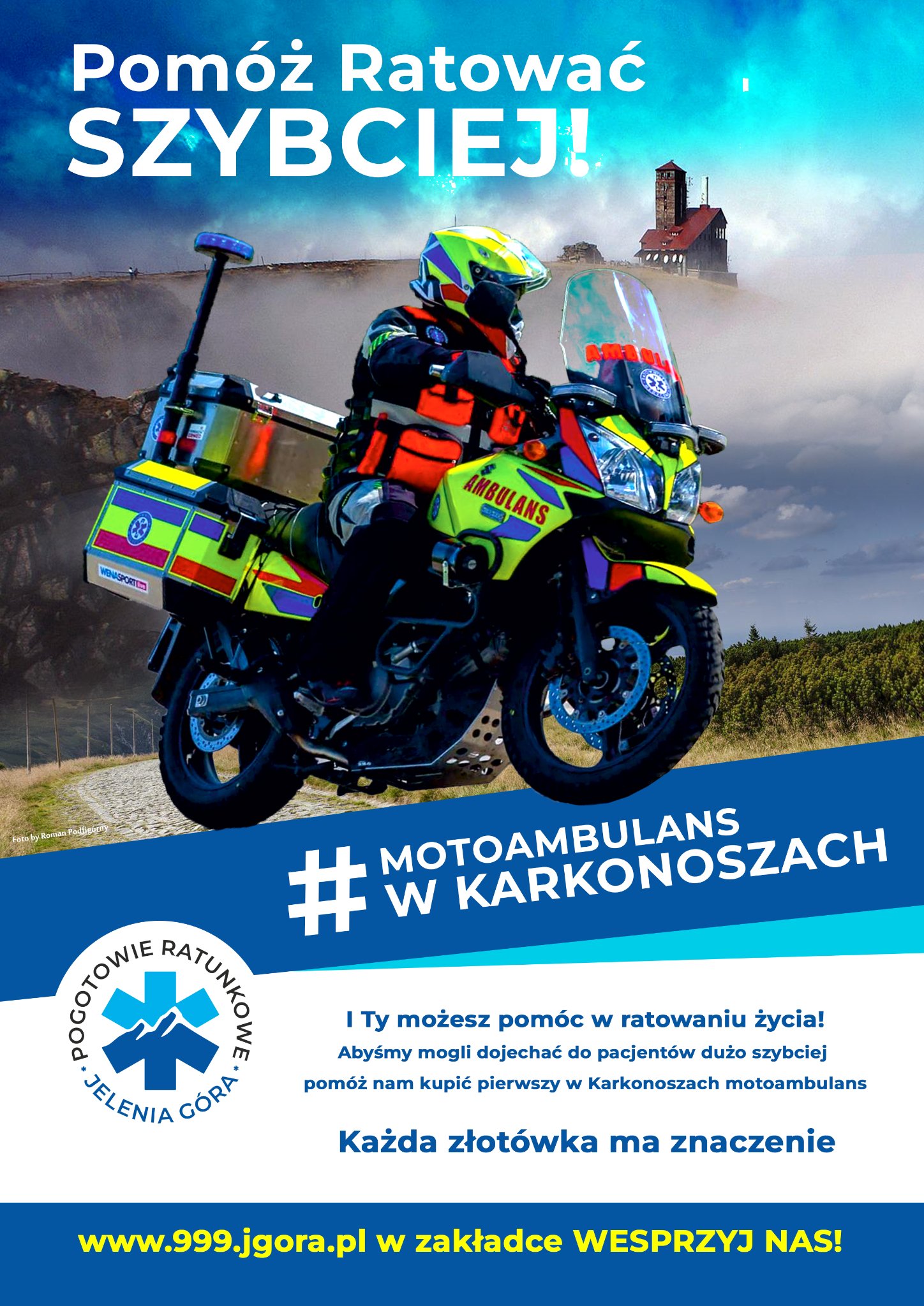 „Abyśmy mogli dojechać dużo szybciej do pacjentów, pomóż nam kupić pierwszy w Karkonoszach motoambulans” – taka prośba pojawiła się na stronie na FB Pogotowia Ratunkowego w Jeleniej Górze. Trwa zbiórka pieniędzy.