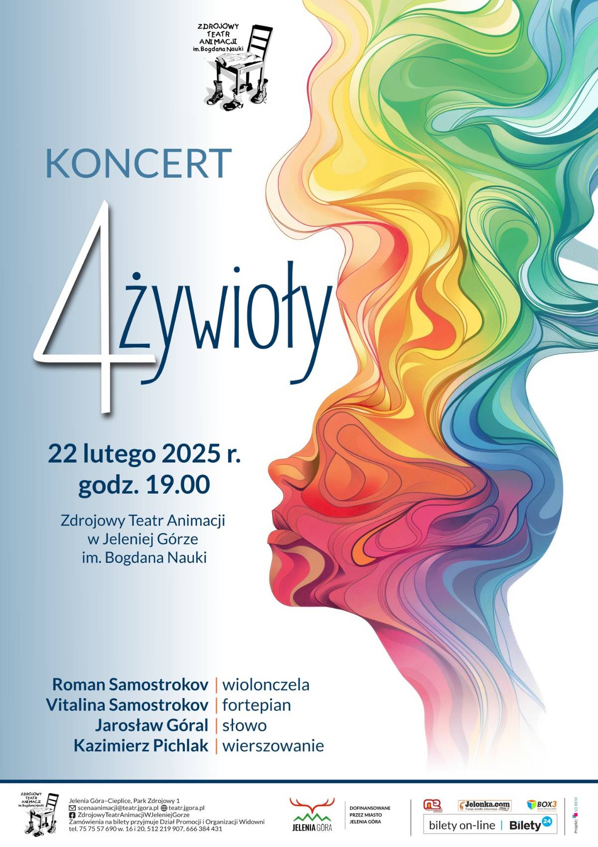 Koncert „Cztery Żywioły” w Zdrojowym Teatrze Animacji w Jeleniej Górze odbędzie się 22 lutego 2025, w sobotę, o godz. 19.00.