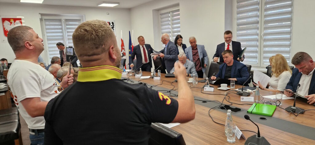 Skandalem zakończyła się sesja rady powiatu karkonoskiego zwołana na 30 września 2025 r. Głównie za sprawą oburzającego zachowania przewodniczącej rady Kingi Nowak z Platformy Obywatelskiej, awantury z udziałem Marcina Bustowskiego oraz biernej postawy większości radnych, którzy najwyraźniej nie chcieli wysłuchać istotnych informacji, jakie miał im przekazania Jacek Kostrzewa, przedstawiciel firmy URBIT (zaangażowanej w głośną i poważną sprawę przerwanego remontu drogi powiatowej na odcinku z Podgórzyna do Sosnówki, której poświęcono wiele uwagi). Krzyki, obraźliwe komentarze, interwencja policji. Obecny na sali starosta karkonoski, który jest także radnym powiatowym, najwyraźniej nie chciał odpowiadać na niewygodne pytania, a koleżanka partyjna prowadząca sesję pomagała mu uniknąć konfrontacji z przygotowanymi do niej gośćmi, którzy bez zaproszenia przyszli na spotkanie, ponieważ mieli do tego prawo. Taka postawa na pewno nie służy działaniom na rzecz dobra publicznego i nie pomaga wyjaśniać bulwersującej sprawy, jaka może okazać się niezwykle kosztowna dla powiatu i samego starosty karkonoskiego.