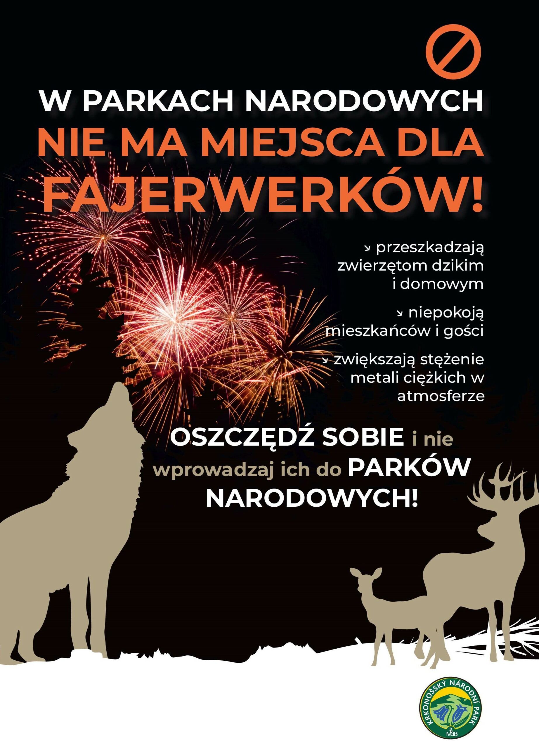 KPN apeluje do turystów i mieszkańców karkonoskich miejscowości, właścicieli pensjonatów oraz hoteli, dzierżawców schronisk, aby zabawy sylwestrowe odbyły się bez fajerwerków. Prosi, by podarować ciszę i spokój nocy zwierzętom, oszczędzić im stresu, nie zanieczyszczać hałasem i światłem parku narodowego i jego otoczenia. Także Państwowa Rada Ochrony Przyrody apeluje o powstrzymanie się od używania wyrobów pirotechnicznych jako wyrazu świętowania, w trosce o środowisko, zwierzęta i nas samych.