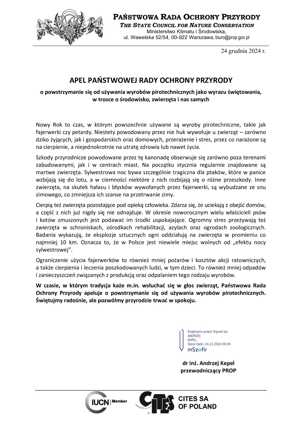 APEL PAŃSTWOWEJ RADY OCHRONY PRZYRODY