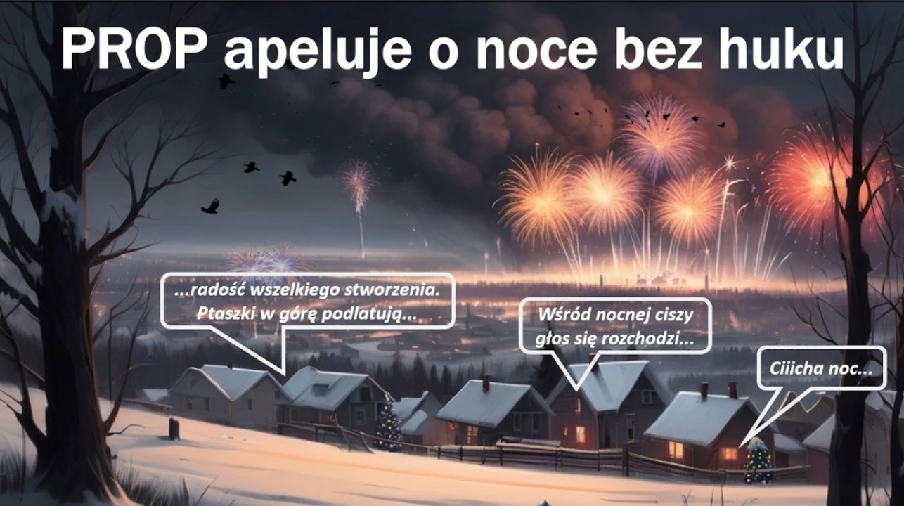 Nowy Rok to czas, w którym powszechnie używane są wyroby pirotechniczne, takie jak fajerwerki czy petardy. Niestety powodowany przez nie huk wywołuje u zwierząt – zarówno dziko żyjących, jak i gospodarskich oraz domowych, przerażenie i stres, przez co narażone są na cierpienie, a niejednokrotnie na utratę zdrowia lub nawet życia.