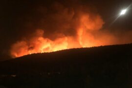 W tej chwili ogień rozprzestrzenia się na południe w kierunku Zatoki Sarońskiej.