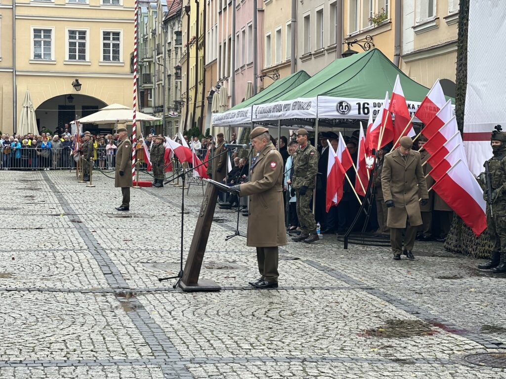 „Szanowni Państwo, moi najmłodsi żołnierze, dzień przysięgi wojskowej jest jednym z najważniejszych momentów w życiu każdego żołnierza. Jest to zrazem wyjątkowe ślubowanie wobec ojczyzny i narodu polskiego. Podobnie jak dawniej, tak i dzisiaj słowa roty zapadają głęboko w serca, przypominając o patriotycznych wartościach głęboko zakorzenionych w naszej narodowej tradycji. Nie przez przypadek 16. Dolnośląska Brygada Obrony Terytorialnej nosi imię pułkownika Ludwika Marszałka pseudonim „Zbroja”, wielkiego patrioty, bohatera II wojny światowej i Żołnierza Niezłomnego, którego prochy spoczywają tutaj nieopodal – na cmentarzu w Cieplicach. Wasze szkolenie i służba przypadły na czas szczególny – czas, gdy fundamenty porządku międzynarodowego w Europie zostały zakwestionowane przez militarną agresję Rosji na sąsiednią Ukrainę. Życzę, aby służba. Którą rozpoczynacie i wszelkie podejmowane zadania dobrze służyły Polakom, a dla Was były źródłem satysfakcji. Bądźcie gotowi stanąć w obronie ojczyzny zawsze! – mówił pułkownik Artur Barański.