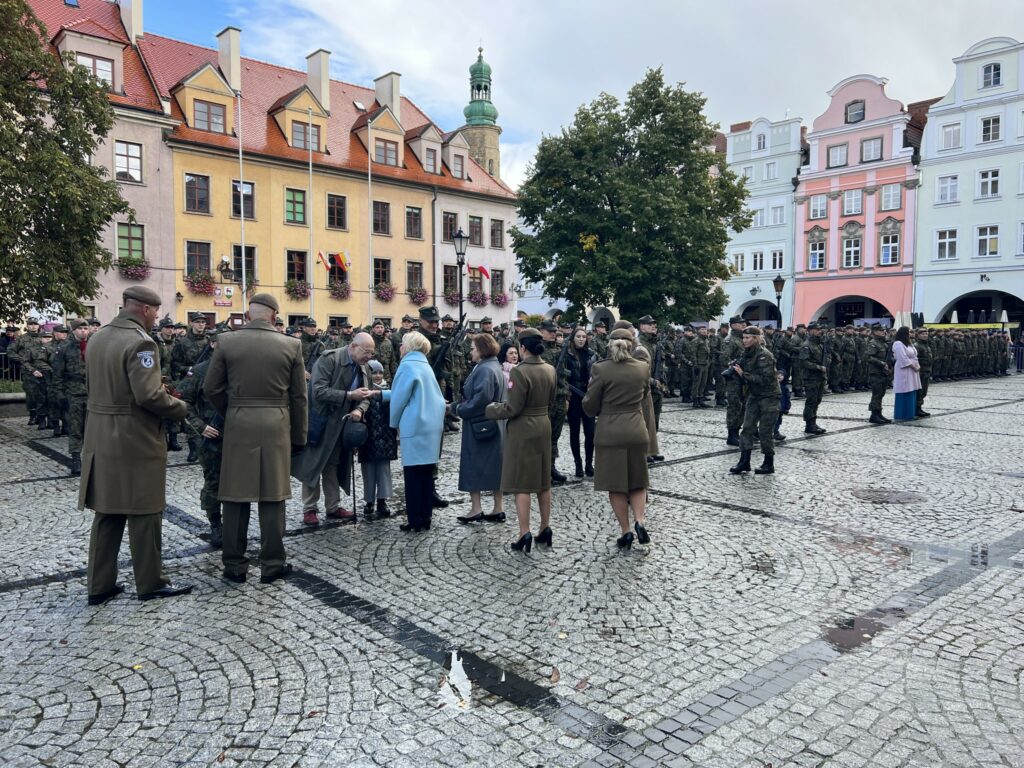 Maksyma terytorialsów „Zawsze gotowi, zawsze blisko” zabrzmiała dzisiaj (18 września) na placu Ratuszowym w Jeleniej Górze. Stu żołnierzy WOT ślubowało w strugach deszczu. Najlepsi odebrali listy gratulacyjne od Artura Barańskiego, dowódcy 16. Dolnośląskiej Brygady Obrony Terytorialnej. Dla jeleniogórzan to była ważna uroczystość. Wielu z nich przypomniało sobie czasy, gdy wojsko było na stałe obecne w mieście. Usłyszeli ważną deklarację: wojsko wraca do Jeleniej Góry!