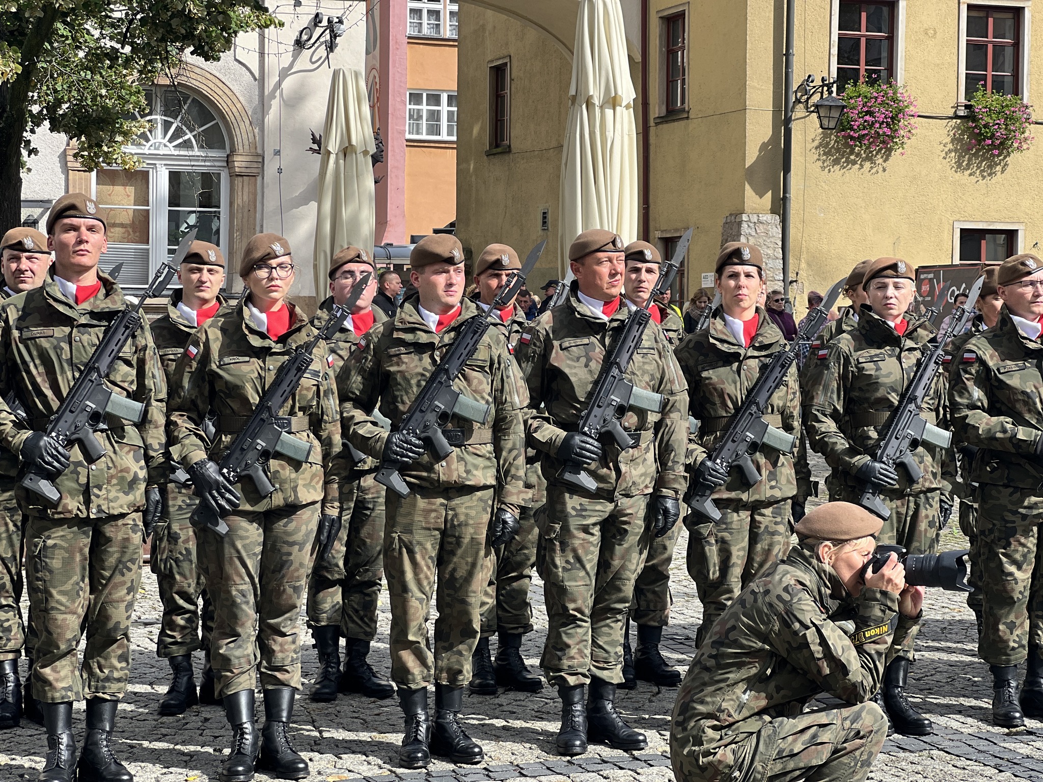 Maksyma terytorialsów „Zawsze gotowi, zawsze blisko” zabrzmiała dzisiaj (18 września) na placu Ratuszowym w Jeleniej Górze. Stu żołnierzy WOT ślubowało w strugach deszczu. Najlepsi odebrali listy gratulacyjne od Artura Barańskiego, dowódcy 16. Dolnośląskiej Brygady Obrony Terytorialnej. Dla jeleniogórzan to była ważna uroczystość. Wielu z nich przypomniało sobie czasy, gdy wojsko było na stałe obecne w mieście. Usłyszeli ważną deklarację: wojsko wraca do Jeleniej Góry!