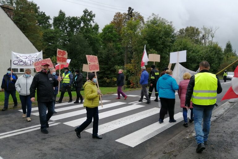 – Mamy dość. Codziennie ryzykujemy życiem, idąc do sklepu czy szkoły obok mknących cieżarówek i aut osobowych. To jest droga śmierci!- tak dzisiaj (17 października) mówili w Chmieleniu mieszkańcy. Domagają się od GDDKiA budowy chodnika. Aby podkreślić, że to dla nich sprawa życia i śmierci, protestują dzisiaj (17 października) na drodze krajowej nr 30.