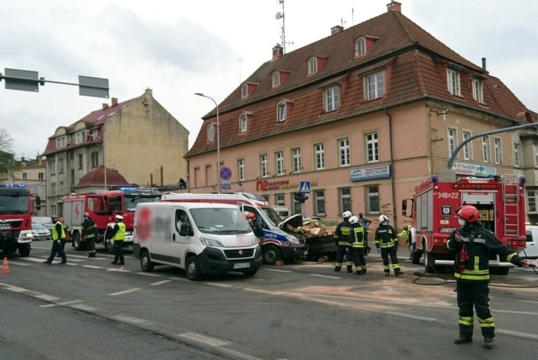 Ambulans uderzył w samochód transportowy przewożący drewno. Do zdarzenia doszło kilka godzin temu na skrzyżowaniu w centrum Jeleniej Góry. Karetka pogotowia jechała do szpitala zakaźnego w Bolesławcu z pacjentem z podejrzeniem zakażenia COVID-19.