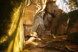 Na rozległej, powulkanicznej, bazaltowej skale, wznosi się jeden z najpiękniejszych zamków, jakie znajdują się na ziemiach współczesnej Polski. Jego początki sięgają XII wieku, a rzeczywista historia – 1470 roku, kiedy na fundamentach założonego tu wcześniej książęcego grodu, rusza budowa okazałej rezydencji. Prace zleca Fryderyk I, książę legnicki, zmuszając do udziału w przedsięwzięciu, mieszkańców i Radę Miejską Złotoryi. Po śmierci Fryderyka, nad budową czuwa jego żona, a później syn – Fryderyk II. Na początku XVI wieku konstrukcja zamku jest dodatkowo fortyfikowana, w związku z tak zwaną trwogą turecką, czyli obawą przed muzułmańskim najazdem z południowego wschodu. W latach 30 tych XVI wieku, Grodziec staje się ulubioną rezydencją legnickich Piastów, tym samym – jednym z najpiękniejszych zamków na Dolnym Śląsku. Co więcej, uchodzi wówczas za twierdzę nie do zdobycia; strome zbocze porośnięte drzewami, bardzo mocno osadzone podzamcze, wysokie mury obronne oraz baszty – dają gwarancję bezpieczeństwa. I rzeczywiście przez ponad sto lat bramy twierdzy pozostają zamknięte dla niechcianych gości, a srogie obwałowania obronne dzielnie opierają się wszelkiemu wrogowi. Nie tylko legenda, ale historyczne fakty donoszą, że kasztel swego czasu wzięto podstępem raczej niż siłą…
