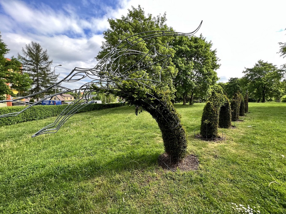 – Pierwszy był wąż w parku przy ul. Głowackiego. Wynurza się z trawy i w niej znika. Konstrukcja z ocynkowanej stali wypełniona jest cisem. Wykonał ją w 2015 roku. Spodobała się tak bardzo, że po niej pojawiły się następne. Najpierw powstał szachowy skoczek z wyciętego przy al. Wojska Polskiego drzewa, a po nim kolejna figura – goniec. Ten drugi na Osiedlu XX-lecia. Rosła tam topola, ale zagrażała bezpieczeństwu, więc została ścięta. Goniec powstał z jej pnia. Ma dwa i pół metra wysokości – opowiada o kolejnych przedsięwzięciach artysty Zbigniew Rzońca, rzecznik MPGK.